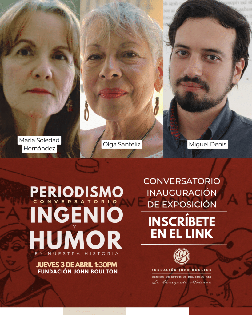 Exposición de María Soledad Hernández (profesora universitaria y especialista en la historia de la prensa venezolana) e intervenciones de Olga Santeliz (Historiadora y Gerente General del Museo) y Miguel Denis (Historiador e Investigador del Museo)